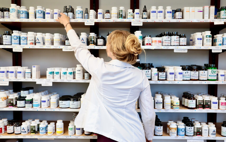 A fully stocked apothecary makes it easy to access high-quality supplements recommended for your care.